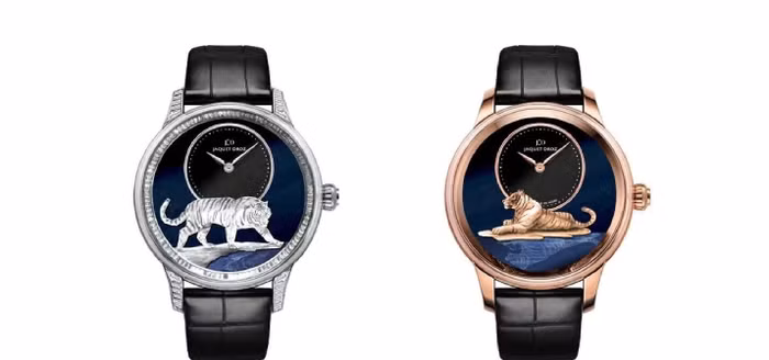 Ngược dòng lịch sử về thế kỷ 18, gia đình Jaquet-Droz là một trong số những người đi tiên phong trong nghệ thuật trang trí vượt bậc. Họ nổi tiếng với kỹ nghệ sử dụng những loại hình chế tác vô cùng sắc sảo. Bắt đầu từ niềm đam mê, và dần dần xây dựng nên một thế hệ thợ thủ công với những đôi bàn khéo léo. Vào thời điểm đó, ngoài những chiếc đồng hồ bỏ túi, những nghệ nhân của Jaquet Droz còn thổi hồn cho những chiếc bình, hộp đựng thuốc lá, hay những chiếc lồng nhờ những bức tranh nghệ thuật vô cùng đặc sắc và tinh xảo, hay thậm chí họ còn có thể tạo ra những chú chim cơ học có thể hót vang. Ngày nay thế giới vẫn tỏ lòng ngưỡng mộ với được bộ ba automata huyền thoại The Writer (nhà văn), The Musician (Nhà soạn nhạc), và The Draughtsman (Họa sĩ) do hai cha con nhà sáng lập Jaquet Droz thực hiện. Với một thương hiệu gạo gội và đặc biệt trân trọng những giá trị của di sản về văn hóa và nghệ thuật như Jaquet Droz, một lần nữa việc giới thiệu sáu mẫu, chia làm ba cặp đôi đồng hồ, dành đặc biệt cho năm Nhâm Dần 2022 – thực sự là những tác phẩm nghệ thuật minh chứng rằng sự sáng tạo là không giới hạn.