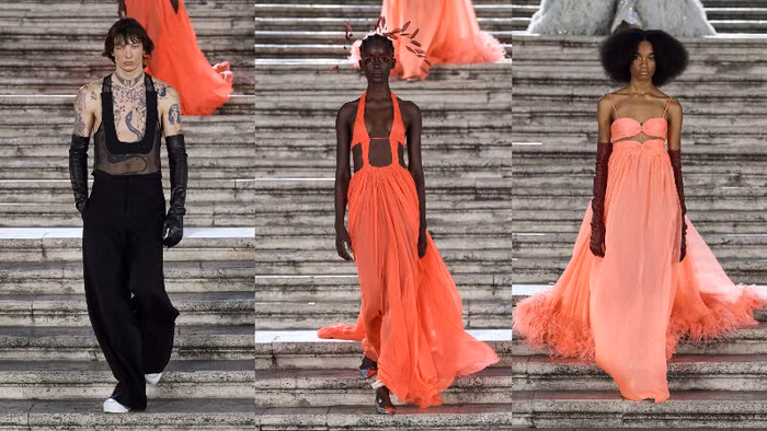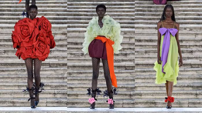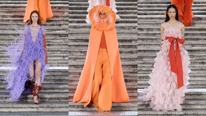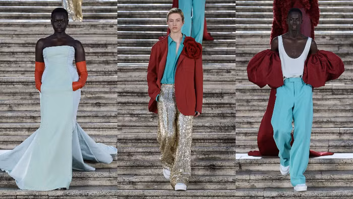 Trở về thủ đô Rome xinh đẹp (Ý), BST Valentino Haute Couture Thu Đông 2022 khiến các tín đồ thời trang thổn thức trước những tạo tác nghệ thuật thủ công thượng thừa. Không phải ngẫu nhiên mà Pierpaolo Piccioli lại lựa chọn Rome và quảng trường Piazza di Spagna làm điểm đến tổ chức show diễn lần này, mà đây là nơi được xem là chứng nhân lịch sử chứng kiến sự ra đời và phát triển của nhà mốt Valentino trong địa hạt Haute Couture xa xỉ.