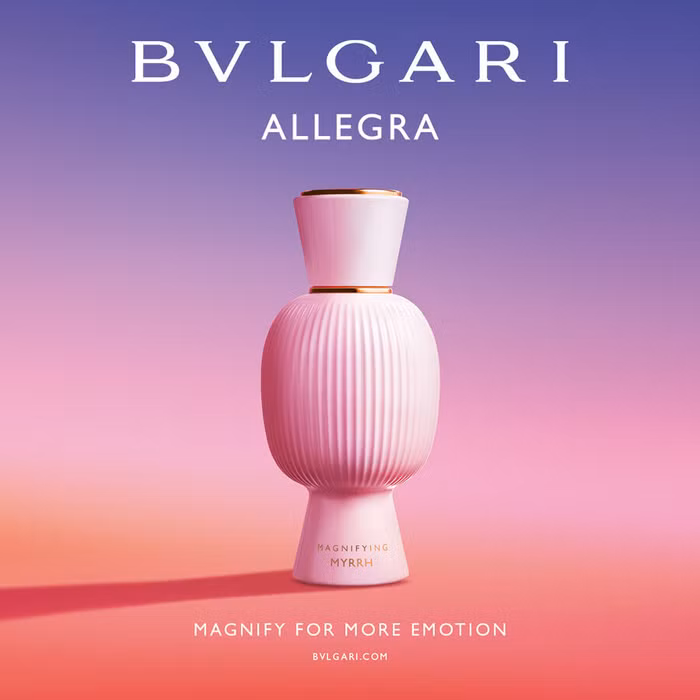 Lần này, BVLGARI lại tiếp tục chuyến phiêu lưu ấy với ba mùi hương mới: Spettacolore eau de parfum, Baciami eau de parfum và tinh chất Magnifyng Myrrh Essence. Nếu Spettacolore đại diện cho sự lôi cuốn, Baciami là niềm đam mê, thì tinh chất Magnifyng Myrrh Essence sẽ là một sự bí ẩn khó cưỡng, khiến cho sức hấp dẫn của BVLGARI ALLEGRA đạt đến tầm cao mới, đúng như cái chất “hơn đời” trứ danh của Ý và Thành Phố Vĩnh Hằng.