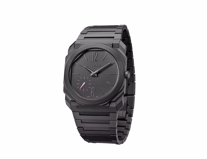 Là một dòng đồng hồ danh tiếng từng mang về cho thương hiệu không ít kỷ lục thế giới kể từ khi ra mắt vào năm 2014, Octo Finissimo xứng đáng là biểu tượng mới của làng chế tác đồng hồ xa xỉ trong thế kỷ 21 và là tinh hoa của sự hiện đại trong lĩnh vực này. Khác biệt hoàn toàn với phiên bản tiêu chuẩn, “mảnh gốm đen” quyến rũ Octo Finissimo phiên bản đặc biệt dành riêng cho Dự án The Pink Dial xuất hiện cùng mặt số phụ chỉ giây với dòng chữ “Swiss Made” màu hồng tuyệt đẹp, nhằm gợi nhắc đến dự án nhân văn và giàu ý nghĩa này.