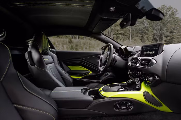 DB11 V8 Coupe nâng cấp sở hữu khoang nội thất tràn đầy cảm xúc và sự xa xỉ mang đậm dấu ấn quý tộc Anh. Ghế ngồi bọc da cao cấp với điểm nhấn là những họa tiết vô cùng đẹp mắt. Khoang lái được phối theo kiểu hai tông màu nâu Bitter Chocolate và vàng Oxford Tan, kết hợp cùng chỉ khâu màu tương phản cùng gói trang bị ốp nội thất sợi carbon đan chéo thể thao ở những khu vực như táp-pi, bảng điều khiển và lưng ghế. Nội thất sang trọng được chế tác thủ công với các loại da và ốp gỗ cao cấp có thể cá nhân hoá theo chương trình Q by Aston Martin.