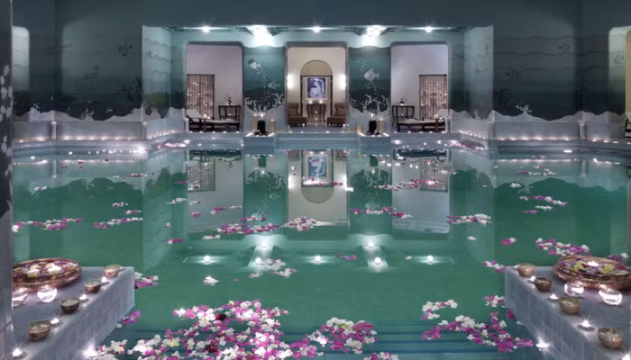 Được thiết kế với phong cách diễm lệ và cầu kì của nền văn hoá Ấn Độ nhiều màu sắc, các phòng nghỉ đều giữ lại những nét cổ điển vốn có của cung điện với những bức chân dung hoàng tộc và thảm trải cao cấp. Khách sạn cũng nổi tiếng với khu vườn thượng uyển nuôi chim công đẹp như tranh vẽ mà bất cứ thượng khách nào cũng muốn trải nghiệm một bữa tối lãng mạn tại đây.