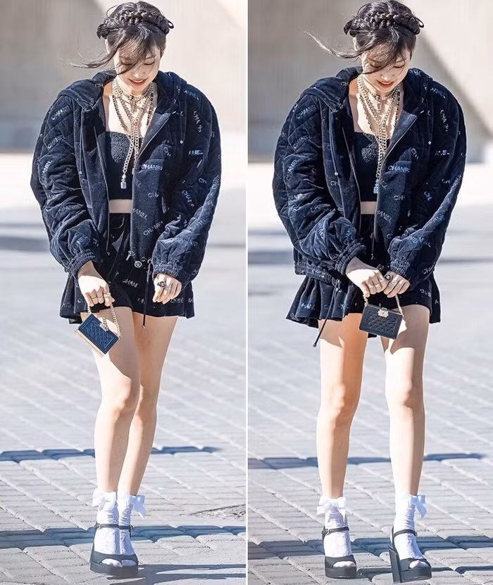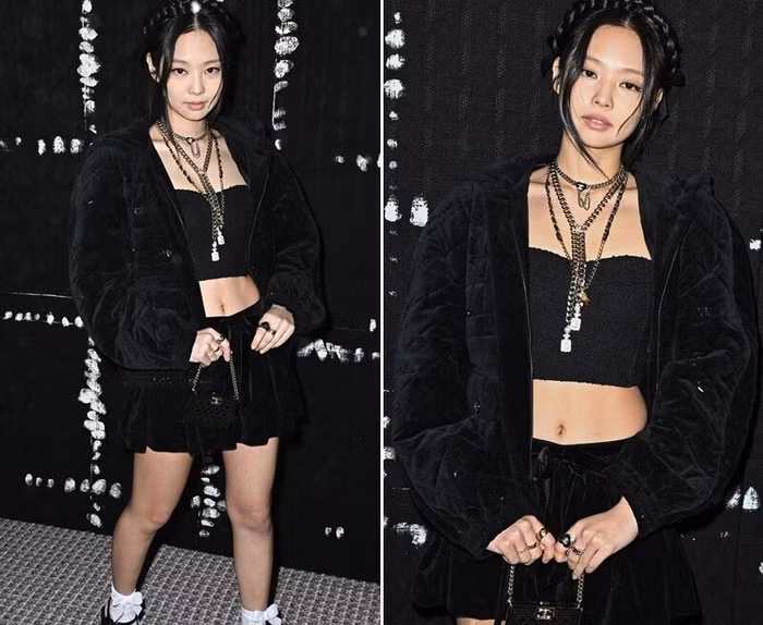 Jennie xách túi Chanel xinh xắn, diện bộ cánh tuyền đen, khoe khéo vòng eo thon và vóc dáng săn chắc. Layer vòng cổ và cách mix tất nơ trắng cùng giày cao gót không chỉ làm nổi bật cá tính mà còn giúp cô nàng “hack tuổi” xuất sắc, tô đậm vẻ ngọt ngào như nữ sinh. Bông hồng nhà YG chia sẻ rằng bản thân rất thích bộ trang phục đã chọn để dự show. Cô nàng còn tự tay đăng tải loạt hình ảnh bên lề sự kiện lên trang cá nhân, thu hút hàng triệu lượt thả tim và “cơn mưa” lời khen từ người hâm mộ.