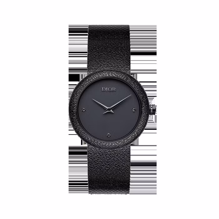 La D de Dior là một mặt hàng chủ lực của M aison, một bộ sưu tập đồng hồ kéo dài suốt hai thập kỷ. Đồng hồ chế tác Thụy Sĩ trả lời ứng dụng kỹ thuật của Pháp theo phong cách này, phong cách này lần đầu tiên được coi là “dải băng cho biết thời gian”. Với màu đen mờ bao phủ đồng hồ, nó vừa hiện đại vừa cổ điển.