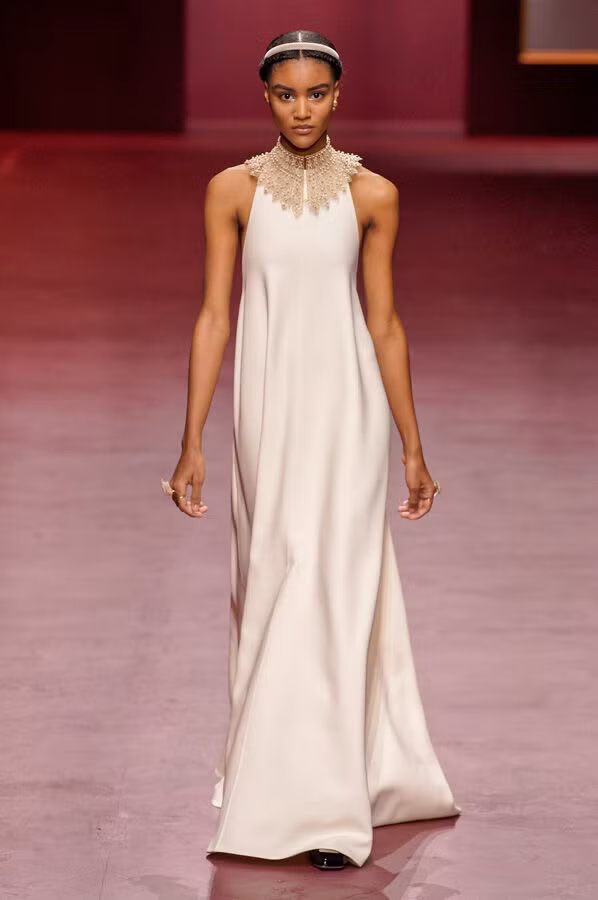 Như trong một bức tranh của Velázquez, đường viền của cấu trúc kim loại biến những món trang sức này thành những đường viền, vòng cổ bằng ren có hình sao rộng được tầng lớp quý tộc sử dụng trong thế kỷ XVI và XVII, tạo ra sự song song tuyệt đẹp giữa những người mẫu và phụ nữ được vẽ trên tường. Một sự hiện diện không thể thiếu, những món trang sức cũng là sự tôn vinh niềm đam mê của nhà sưu tập đối với người sáng lập Dior, một nhà sáng tạo tiên phong, chưa bao giờ thôi sáng tạo trên những cảm hứng từ vẻ đẹp của quá khứ.