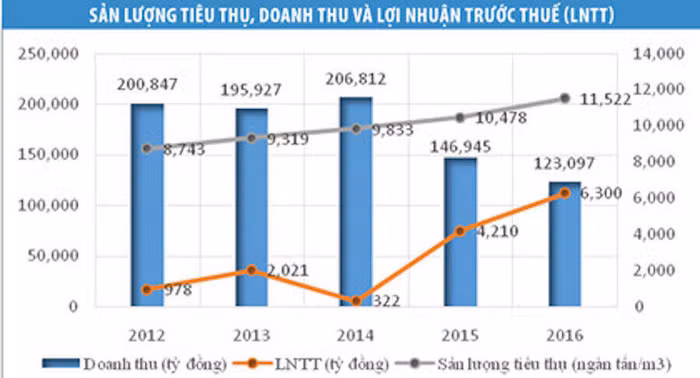 Năm 2016, dù sản lượng xăng dầu xuất bán hơn 11,44 triệu tấn, tăng 10,35% so với năm 2015, nhưng do giá xăng dầu giảm nên doanh thu thuần giảm 16% xuống còn 123.097 tỷ đồng. Tuy vậy, nhờ Công ty thay đổi công thức giá mua, chính sách tồn kho hợp lý hơn, lợi nhuận gộp được cải thiện từ 8,7% năm 2015 lên 11,5%, giúp lợi nhuận sau thuế hợp nhất dành cho cổ đông công ty mẹ vẫn tăng 51,6%, đạt 4.669 tỷ đồng. Hệ số sinh lời trên vốn chủ sở hữu (ROE) 22,2%, hệ số sinh lời trên tổng tài sản (ROA) đạt 9,5%.