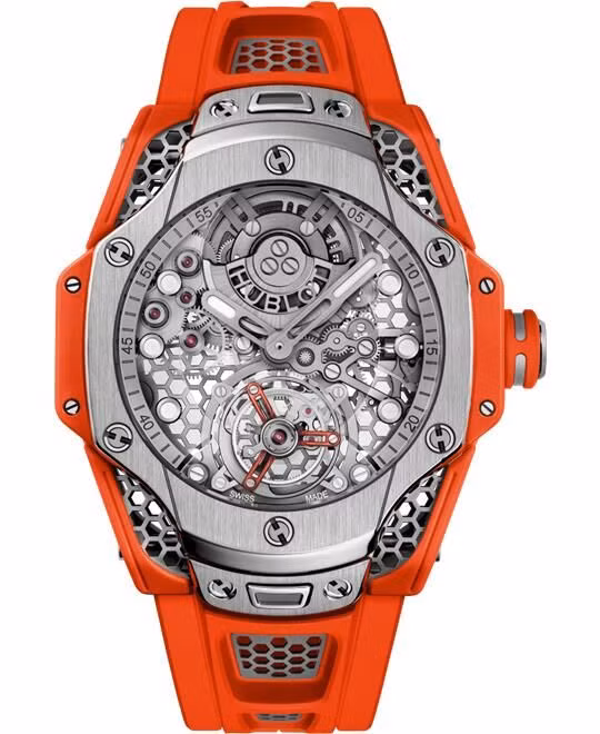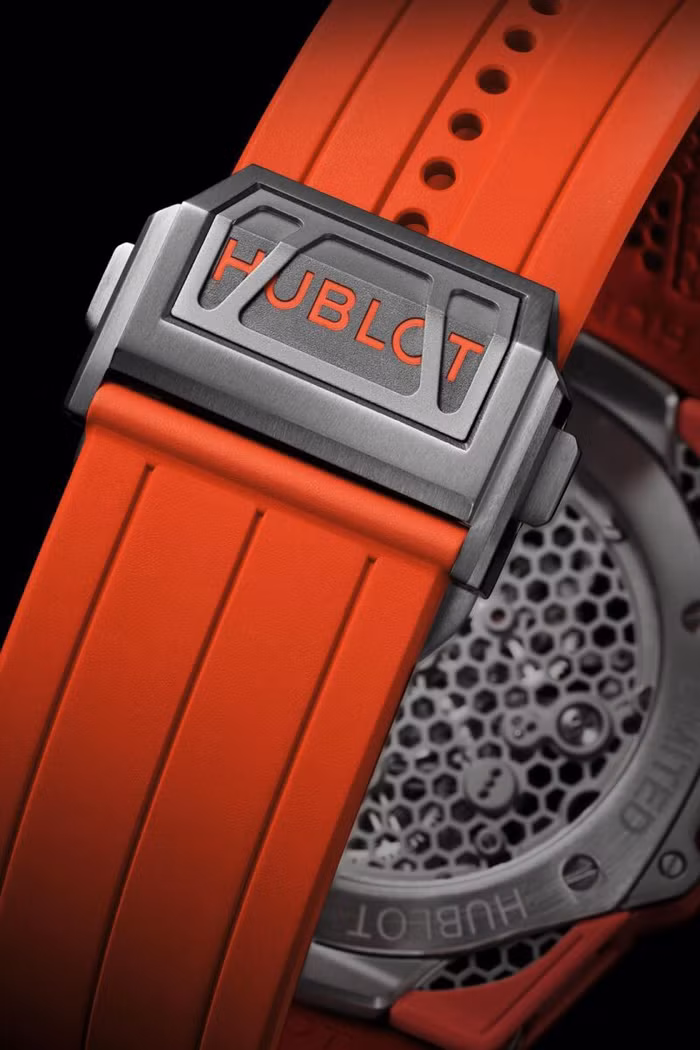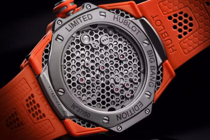 Chủ đề tổ ong cũng được chọn trong lưới titan được sử dụng trên vỏ, mặt số sapphire, mặt sau và dây đeo. Hình dạng cơ bản của tự nhiên này có thể được lặp lại mà không có khoảng trống hoặc chồng chéo, biểu thị sức mạnh của các liên kết. Đồng thời, nó có độ bền cao và tiện dụng, đặc biệt khi được kết hợp với kiến trúc titan mở và dây đeo cao su linh hoạt, mang lại sự thoải mái tối đa trên cổ tay.