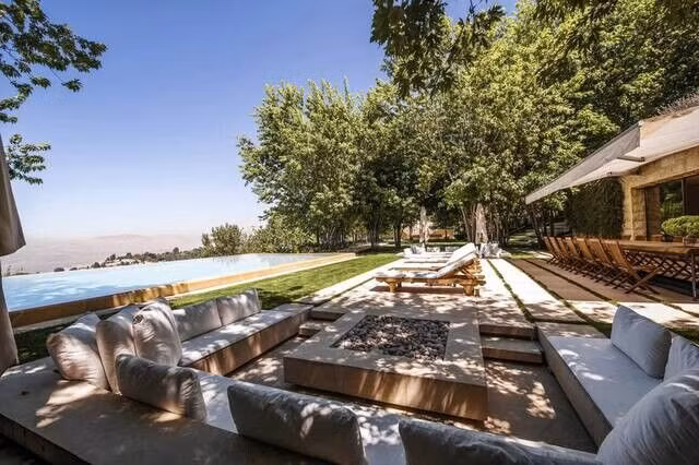 Dinh thự của Elie Saab nằm ở trên núi, cách Beirut khoảng 1 tiếng lái xe. Trên đường đến đây, các vị khách sẽ có cơ hội ngắm nhìn những ngọn đồi xanh mơn mởn và thung lũng thơ mộng. Gia đình của NTK này cũng được thưởng thức khung cảnh tương tự từ bàn ăn ngoài vườn của mình.