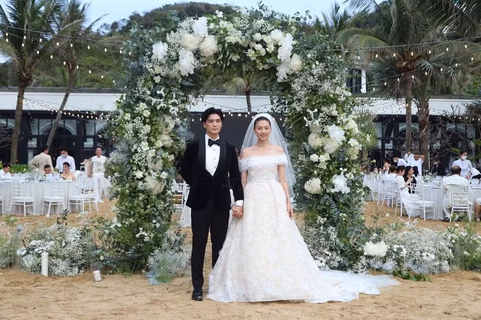 Elie Saab cũng là thương hiệu mà nữ diễn viên Hàn Quốc Son Ye Jin mặc trong đám cưới thế kỷ của mình với tài tử Hyun Bin cách đây không lâu. Bộ váy này thuộc BST Elie Saab Bridal Spring 2022, với phần cổ vuông trang nhã, có giá hơn 524 triệu VNĐ.