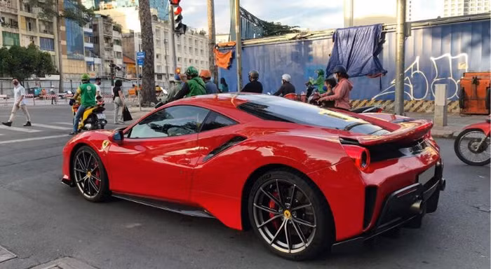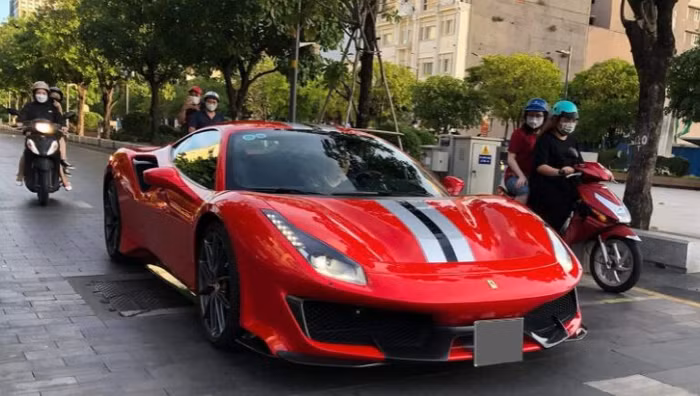 Dù được đưa về nước trong khoảng một thời gian khá lâu nhưng đây mới là lần đầu tiên chiếc Ferrari 488 Pista này được chủ nhân mang đi dạo phố.
