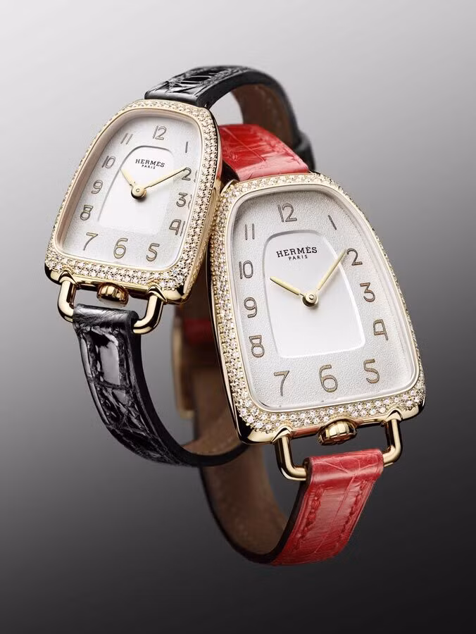Gợi lên một cách sống động tốc độ và sự tự do của những nước phi, các con số kích thước tăng dần – được phủ bột và tạo điểm nhấn đầy tinh xảo bằng đường viền màu than antraxit – nổi bật trên nền phun cát, trong khi các kim chỉ giờ quét nhẹ nhàng trên bề mặt trắng mịn. Tôn vinh thế giới của những chú ngựa một cách đầy tinh tế, chữ số 8 được cách điệu tựa hình dáng của một chiếc bàn đạp ngược. Dây đeo bằng da bê hoặc da cá sấu được chế tác tại các xưởng chế tác đồng hồ của Hermès tiếp tục hòa quyện với sự mềm mại của thiết kế khí động lực và vị lai trong tạo tác thời gian này.