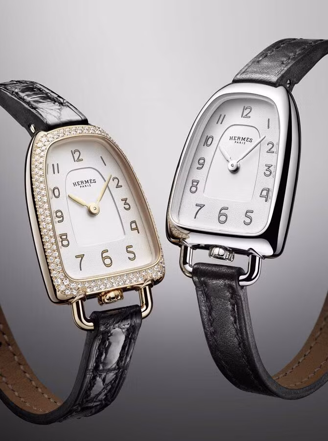 Gắn liền với di sản các tạo tác cho kỵ mã của Nhà mốt, Galop d’Hermès được biến hóa thành chiếc đồng hồ trang sức, phô bày hình dáng tựa chiếc bàn đạp của mình trong ba thiết kế Small Model kích thước nhỏ (20 x 27,2 mm): một mẫu bằng thép không đính đá quý và hai mẫu khác bằng thép hoặc vàng hồng đính 134 viên kim cương. Bộ vỏ cong với các góc mềm mại định hình cho mặt số với các chữ số Ả Rập kích thước khác nhau. Các chữ số ở phần dưới mặt số được thiết kế lớn hơn, tạo cảm giác về sự chuyển động và phối cảnh xa gần.