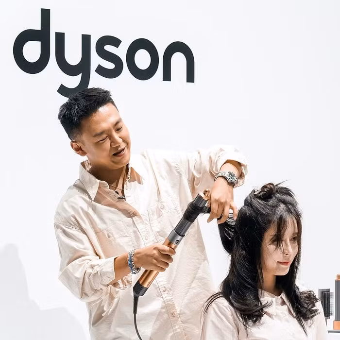 Bước 2: Sấy tóc bằng máy Dyson Airwrap Multi-styler với phụ kiện đầu sấy suôn mượt Coanda để đưa các sợi tóc con vào nếp. Lựa chọn chế độ sấy khô, điều chỉnh nhiệt độ thấp và lực gió cao, sấy đến khi tóc khô khoảng 80%.