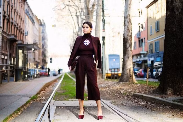 Phối hợp quần ống rộng trùng màu với áo sẽ đem lại vẻ ngoài thông minh, trang nhã cho người mặc. Cách mặc này sẽ phù hợp với những loại vải có màu pastel tươi sáng hoặc táo bạo hơn với những họa tiết in tạo nên set trang phục đồng bộ đầy ấn tượng.