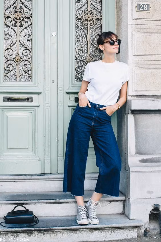 Chỉ cần một chiếc áo thun là bạn đã có thể trở nên bắt mắt khi kết hợp cùng quần culottes.