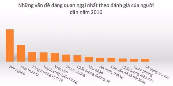 "Kết quả tổng hợp từ đánh giá của hơn 14.000 người dân Việt Nam được phỏng vấn trực tiếp năm 2016 cho thấy, có ba vấn đề hệ trọng nhất của đất nước trong năm 2016.