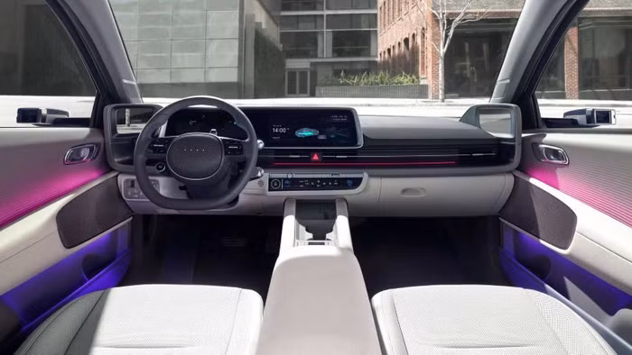 Bên trong khoang cabin, Ioniq 6 sở hữu bảng điều khiển mô-đun, bao gồm bảng điều khiển công cụ kỹ thuật số 12 inch và màn hình thông tin giải trí cảm ứng 12 inch, hỗ trợ Android Auto và Apple CarPlay, trong khi đa kết nối Bluetooth cho phép ghép nối tối đa hai thiết bị tại cùng thời gian; một cho các cuộc gọi điện thoại và một để phát nhạc trực tuyến.