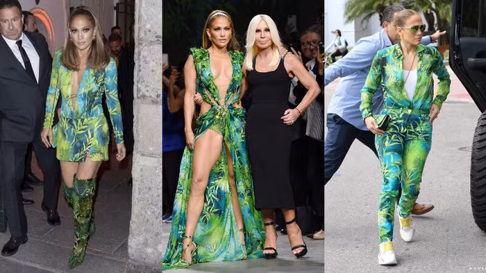 Bất luận khi tìm kiếm từ khóa nào liên quan đến phong cách thời trang của Jennifer Lopez đều không thể nào không nhắc đến thiết kế đầm họa tiết nhiệt đới với những được cắt xẻ tinh tế, màu xanh lá cây của Versace tại lễ trao giải Grammy 2000. Khi đó, trong lúc chuẩn bị phục trang, nhà tạo mẫu của nữ ca sĩ người Mỹ lúc bấy giờ không muốn cô mặc một chiếc đầm từng được nữ diễn viên Geri Halliwell mặc tại thảm đỏ trước đó. Và thiết kế đầm mang lối thiết kế táo bạo này trở thành món đồ lý tưởng để tỏa sáng trong đêm trao giải và giúp J.Lo một bước chạm đến biểu tượng thời trang nổi bật nhất trên khắp mặt báo danh tiếng trên toàn thế giới chỉ sau 1 đêm. Hơn 1 thập kỷ trước khi xuất hiện thuật ngữ “bão mạng internet” thì Jennifer Lopez không chỉ làm được điều đó mà còn làm nên một cuộc cách mạng với lượt tìm kiếm “khủng”.