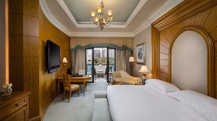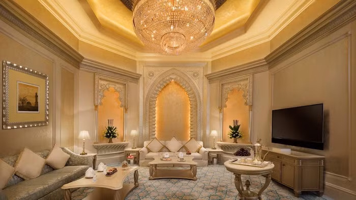 Với giá 3 tỷ USD, Emirates Palace ở Abu Dhabi có lẽ là khách sạn đắt nhất thế giới khi mở cửa vào năm 2005. Sảnh, phòng và hành lang được trang trí với hơn 1.000 đèn chùm Swarovski, chiếu sáng trần nhà dát vàng.