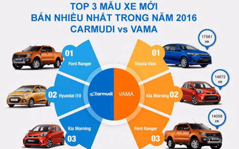 Trong hai năm liên tiếp 2015 và 2016, tính cả xe mới và xe cũ thì Toyota Innova, Kia Morning và Toyota Vios vẫn là bộ ba xe hấp dẫn đối với người mua xe trực tuyến khi được quan tâm và đổi chủ nhiều nhất trên Carmudi.