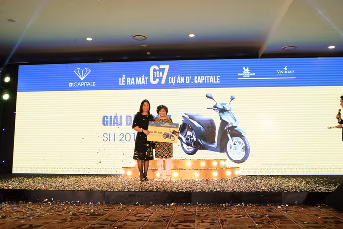 Các khách hàng và nhà đầu tư tham dự và đăng ký mua căn hộ tại toà C7 D'.Capitale cũng vô cùng hào hứng với những phần quà và ưu đãi đặc biệt của chủ đầu tư như: xe máy SH 2017 150i trị giá 106 triệuđồng; TV Sony 4K 65 inch trị giá 42,4 triệu đồng; IPhone 7plus black 128G trị giá 26 triệu đồng; thẻ gifcard VINID,….