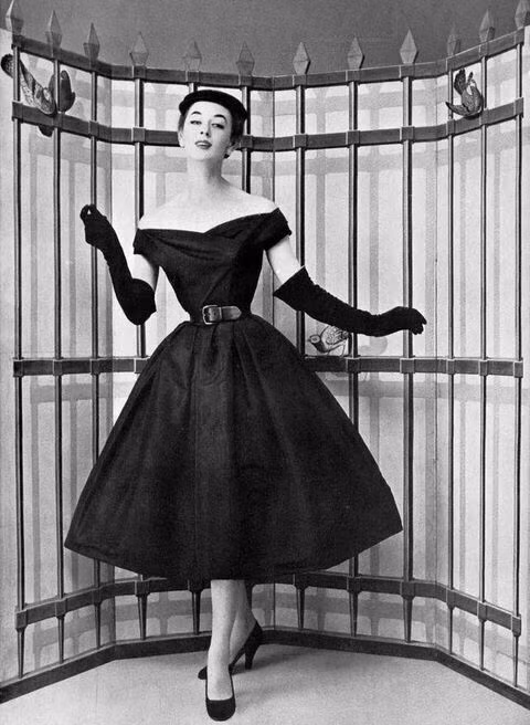 The Bar Jacket và the New Look là hai ví dụ điển hình nhất nhất cho tầm nhìn của Christian Dior. Đây là một trong những minh chứng là một trong những đầm đen ngắn mạnh nhất được gắn giữa sự giới thiệu của Chanel và Breakfast at Tiffany’s nổi tiếng từ Dior. LBD của Monsieur Dior thường đi với thiết kế cổ cột nơ đặc trưng của ông.