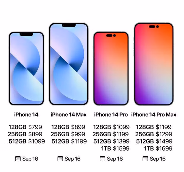 Trong khi đó, bộ đôi iPhone 14 Pro/Pro Max sẽ có giá đắt hơn 100 USD so với thế hệ tiền nhiệm.