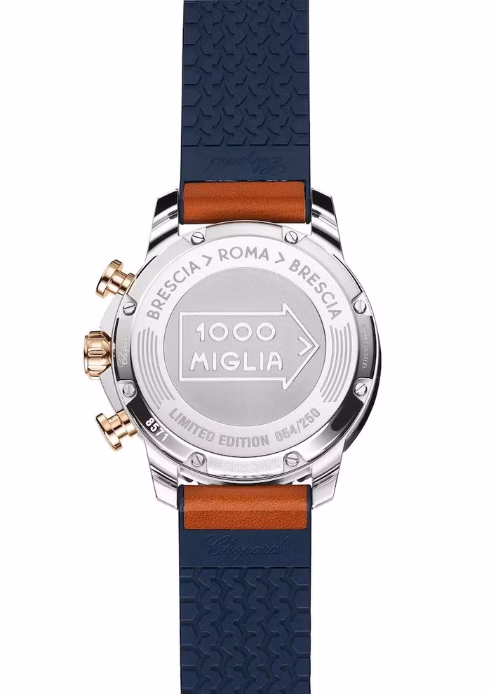 Là đối tác của 1000 Miglia từ năm 1988, Chopard đang phát hành một phiên bản giới hạn mới của đồng hồ bấm giờ cùng tên. Thực tế là hai dòng, vì chiếc chronograph này dựa trên thiết kế của bộ sưu tập Mille Miglia GTS có sẵn trong hai phiên bản. Chiếc đầu tiên, tất cả đều được làm bằng thép, sẽ có giới hạn 1000 bản. Chiếc thứ hai, được dát vàng hồng 18 carat có đạo đức ở cấp độ của vương miện, các thanh đẩy và khung bezel, sẽ chứng kiến sự ra đời của 250 chiếc.