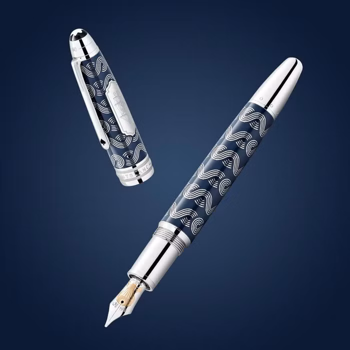 Mỗi chiếc bút máy có được khắc hoa văn hình sóng và biểu tượng con tàu hơi nước trên nắp phủ bạch kim, trong khi cài bút được làm bằng sơn mài mờ màu xanh lam với hiệu ứng chuyển màu tinh tế.