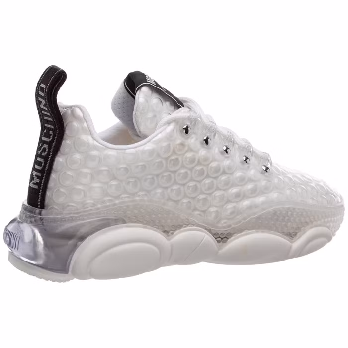 Bắt mắt và vô cùng thoải mái, Moschino Double Bubble Shoes được trang bị phần đệm vững chắc nhờ lớp lót xốp hoạt tính, hoàn toàn phù hợp để sử dụng trong các hoạt động ngoài trời và thể thao hạng nhẹ. Phần đế của đôi giày, Moschino giữ nguyên thiết kế chú gấu Teddy đặc trưng của hãng.