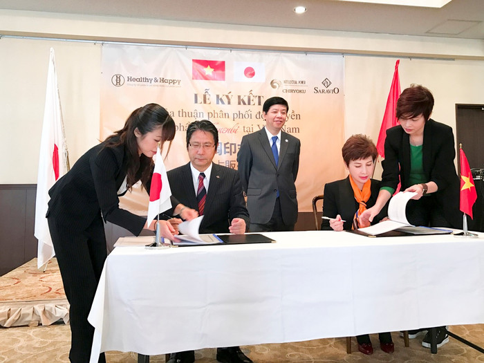 Ông Shigeru HAMADA và CTHĐQT Bà Đặng Thanh Hằng ký hợp đồng phân phối độc quyền các sản phẩm làm đẹp tại Đại sứ quán Việt Nam ở Tokyo