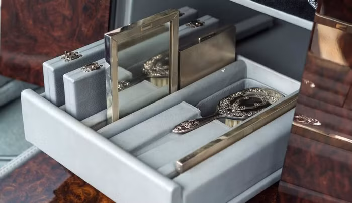 Nội thất của xe cực kì ấn tượng với gỗ óc chó được ốp ở bên trong với một cabin đi trước thời đại. Xe được trang bị TV LCD được trang bị ở bệ tì tay phía sau, đầu đĩa CD, hệ thống máy tính, máy in đi kèm tủ lạnh và khay chứa li đầy đủ.