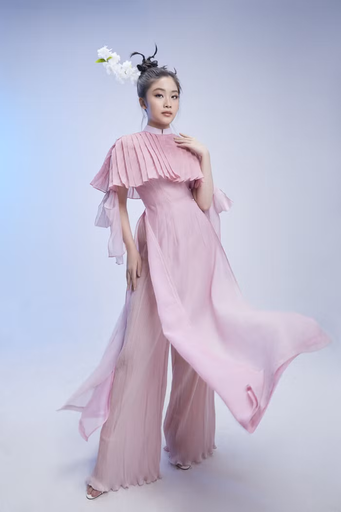 Màu hồng phấn được nam NTK sử dụng là màu chủ đạo trong những thiết kế mới lần này. Dù sử dụng tông hồng pastel ngọt ngào, nhẹ nhàng nhưng nhà mốt Việt lại tập trung vào phần tạo phom để mang tới sức hút cho dòng trang phục thiếu nhi. Cặp đôi mẫu nhí Suri Phương Anh và Nancy Linh Ngọc tiếp tục là 2 “nàng thơ” được NTK ưu ái lựa chọn thể hiện những mẫu thiết kế lần này.