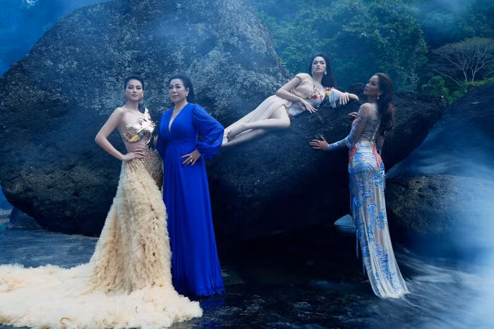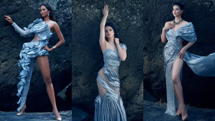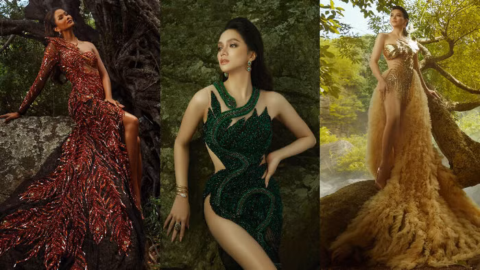Hoa: Không thể không nhắc đến những mẫu trang phục được khơi nguồn sáng tạo từ hoa. Sắc màu tươi sáng và rực rỡ cùng phom dáng với những đường cong uốn lượn, xoay vòng ôm lấy thân hình của ba nàng hậu H’Hen Niê, Hương Giang và Phương Khánh, ba bông hoa tuyệt đẹp của bầu trời showbiz Việt được tỏa hương ngát trời khi khoác lên mình những trang phục kỳ công và rực rỡ hết mức giữa thiên nhiên bao la.