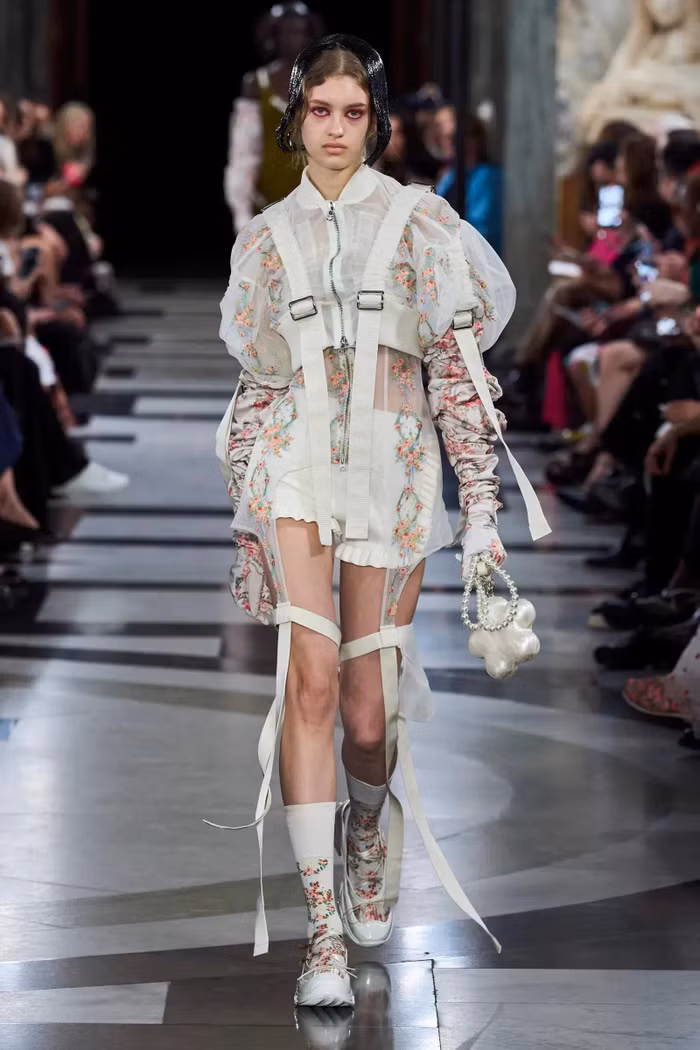 Và lần này cũng vậy, đương đại, mong manh, mãnh liệt, tất cả đều được thổi hồn vào BST Xuân Hè 2023 của NTK Simone Rocha. Tại tòa nhà hành chính The Old Bailey, nước Anh, tiếng nhạc Opera cất lên và những bản phối mềm mại, dây đai cùng họa tiết Baroque, áo bomber quá khổ dần dần xuất hiện. Đây không chỉ đánh dấu lần đầu tiên thương hiệu ra mắt dòng thời trang nam mà còn là sự trưởng thành trong cách thiết kế, khắt khe trong các quy chuẩn mà bản thân tự đặt ra, điều này thể hiện rõ ràng nhất thông qua từng chi tiết nhỏ nhặt ở mỗi sản phẩm của mình.