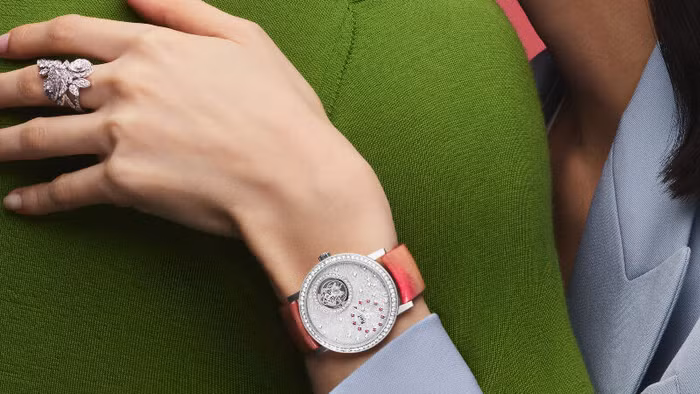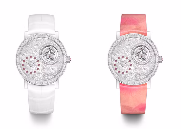 Piaget không giới hạn việc thể hiện đam mê của mình trong các tạo tác trang sức, mà còn đem chúng vào thế giới của nghệ thuật chế tác đồng hồ qua việc giới thiệu thiết kế mới thuộc BST Altiplano. Kiếm tìm vẻ đẹp trong từng nét khắc đoá hoa, chiếc đồng hồ này là minh chứng sáng chói cho năng lực của thương hiệu trong lĩnh vực thiết kế và đổi mới. Phải mất hơn hai năm nghiên cứu để cho ra đời chiếc dây đeo, được làm từ một trong những chất liệu tinh tế nhất: những cánh hoa thật.