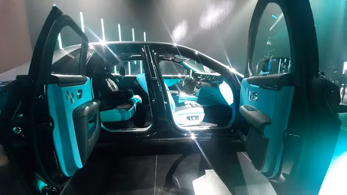 Khoang nội thất có màu xanh dương và đen kết hợp sợi carbon và biểu tượng vô cực ở hàng ghế sau vẫn sẽ xuất hiện để tạo sự khác biệt so với Rolls-Royce Ghost tiêu chuẩn. Thiết kế tổng thể và sự sang trọng của nội thất được duy trì như những biến thể Rolls-Royce Ghost khác. Hàng ghế sau rộng rãi và tiện nghi với các trang bị như chỉnh điện, massage/làm mát, màn hình giải trí, bàn làm việc, tủ lạnh mini, bộ ly pha lê…
