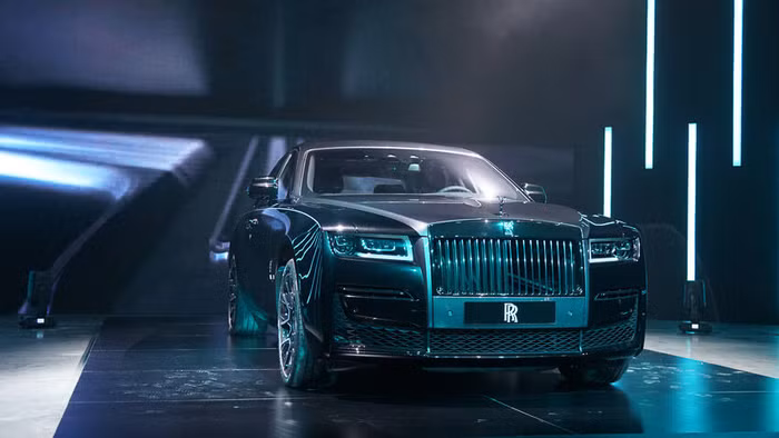 Các chi tiết vốn được mạ crôm trên bản tiêu chuẩn nay được sơn đen trên Rolls-Royce Ghost Black Badge 2022 bao gồm luôn logo Spirit of Ecstacy và lưới tản nhiệt Pantheon Grille của xe.
