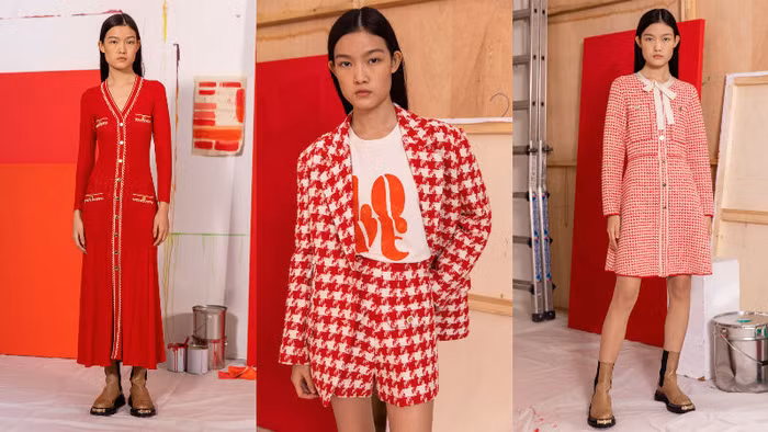 Với BST capsule này, Sandro tô điểm cho tủ đồ của quý cô Paris bằng sắc đỏ quyến rũ. Trong văn hóa phương Đông, màu đỏ tượng trưng cho sự may mắn, hạnh phúc. Có lẽ vì vậy mà Sandro lựa chọn sắc màu này làm chủ đạo trong những thiết kế dành cho quý cô thanh lịch, tựa lời chúc tinh tế cho một năm mới tràn đầy hy vọng. Thông qua BST, thương hiệu nước Pháp ưu ái họa tiết nanh sói (houndstooth) khi nhiều lần đưa họa tiết này vào các thiết kế váy, áo blazer và quần shorts dạ, đặc biệt là chiếc túi tote mới ra mắt cho mùa Tết năm nay. Không dừng lại ở đó, chữ “S” đặc trưng của Sandro cũng được cách điệu, nổi bật trên chiếc áo croptop và cardigan thanh lịch đậm chất Pháp.
