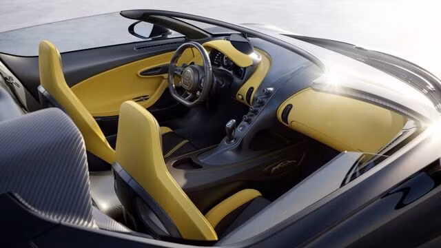 Bên trong, khoang lái của chiếc Bugatti W16 Mistral này không có gì quá khác biệt với những chiếc Bugatti W16 Mistral thuộc thế hệ này.