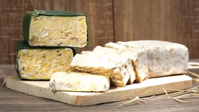 Tempeh được làm từ đậu nành lên men đã được ép thành một chiếc bánh nhỏ gọn. Thực phẩm thay thế thịt giàu protein này chắc nhưng dai và có thể được nướng, hấp hoặc áp chảo trước khi thêm vào các món ăn. Ngoài hàm lượng probiotic ấn tượng, tempeh còn giàu nhiều chất dinh dưỡng có thể cải thiện sức khỏe của bạn. Ví dụ, protein đậu nành đã được chứng minh là giúp giảm các yếu tố nguy cơ nhất định đối với bệnh tim.