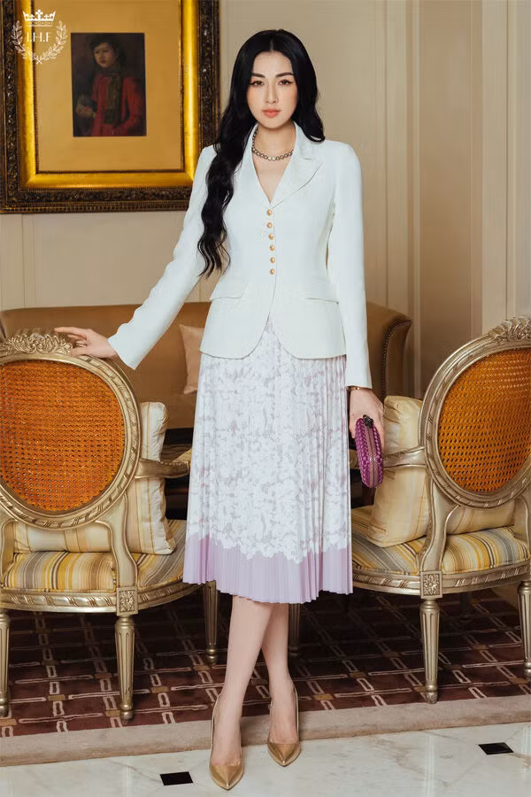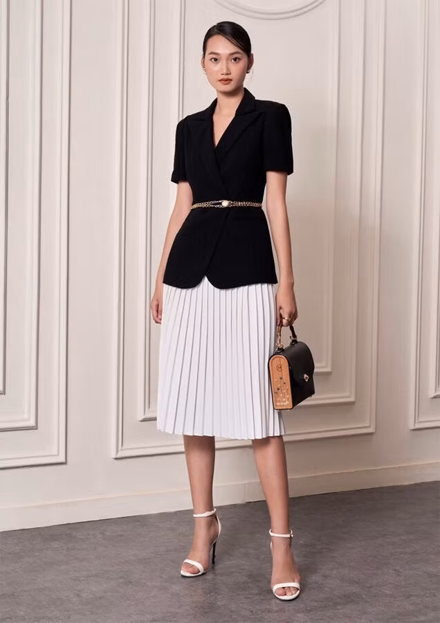 Tất cả mọi thứ về diện mạo này đều có tính “chuyên nghiệp”. Váy midi chữ A, áo blazer vừa vặn và giày bệt mũi nhọn hoặc quai hậu đều là những yếu tố nền tảng của tủ đồ công sở sang trọng. Các món đồ sẽ hoạt động riêng lẻ cho một ngày bình thường tại văn phòng, nhưng khi mặc tất cả lại với nhau, chúng tạo ra một cái nhìn cổ điển mà cảm thấy rất ăn khớp với nhau.