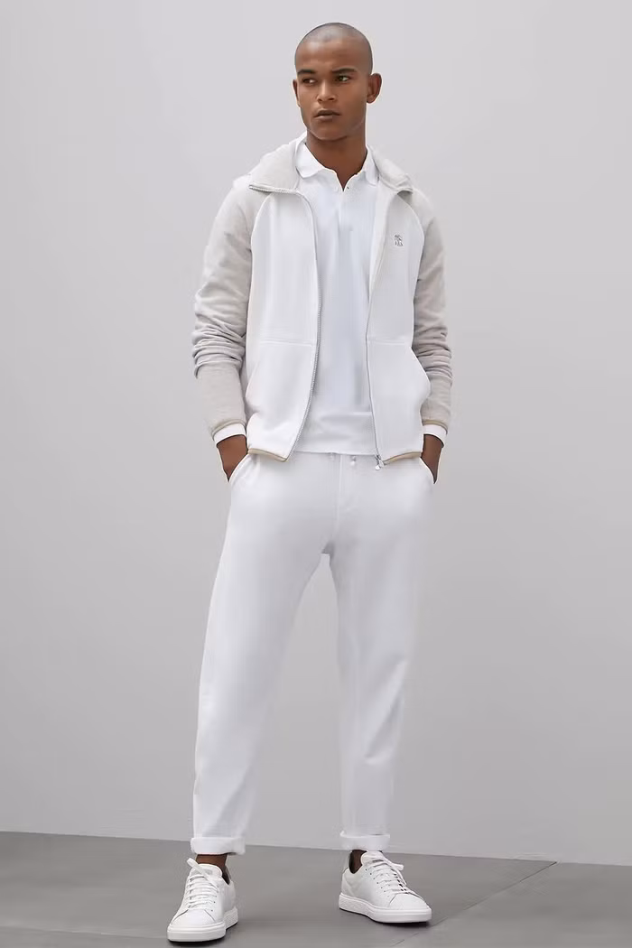 Vốn là sản phẩm gắn liền với thời trang quần vợt, chúng ta dễ dàng bắt gặp những chiếc áo polo trên sân đấu tại giải Wimbledon. Trải qua nhiều thập kỷ, chiếc áo dần chứng minh được công dụng không chỉ nhờ sự thuận tiện, đa năng và dễ dàng phối hợp với nhiều items khác nhau. Dễ thấy nhất là cách mix áo polo bên trong chiếc khoác nỉ thể thao, cá tính, đi kèm chiếc quần dệt cashmere mềm mại, thoải mái trong việc di chuyển.