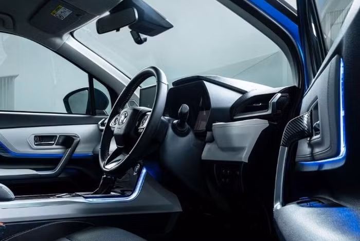Hãng xe Nhật chỉ hé lộ duy nhất 01 bức ảnh về nội thất của Toyota Veloz 2022, cho thấy mẫu MPV mới sẽ được trang bị ghế bọc da kết hợp vải, vô lăng bọc da. Trên bảng táp lô là màn hình thông tin giải trí 9 inch. Xe có hệ thống đèn chiếu sáng xung quanh màu xanh dương. Nội thất mẫu MPV mới còn tạo điểm nhấn với các chi tiết ốp vân sợi carbon ở tay nắm cửa, tôn lên vẻ sang trọng, thể thao.