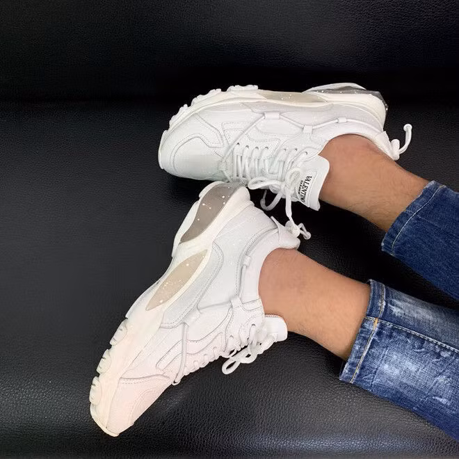 Anh cũng tìm kiếm những mẫu sneakers khác của các thương hiệu Italy như Valentino hay Gucci. Danh hài thường lựa chọn thiết kế sắc trắng để dễ dàng kết hợp cùng trang phục.