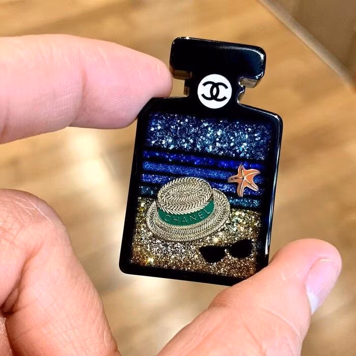 Mẫu cài áo mang phom dáng chai nước hoa Chanel có giá gần 700 USD (khoảng 16 triệu đồng). Thiết kế nằm trong BST Cruise 2019 mang tên La Pausa.