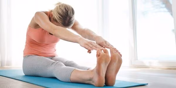 Tips: Nếu bạn không thể tiếp cận bàn chân của mình, hãy đặt thắt lưng hoặc khăn xung quanh lòng bàn chân và dùng tay kéo hai đầu của nó khi bạn nghiêng người về phía trước.