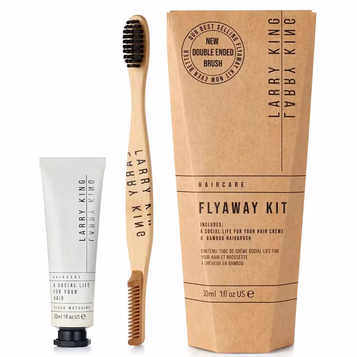 Là vật dụng cần thiết để xử lý những sợi tóc con ngỗ ngược và những sợi tóc xoăn cứng đầu, Flyaway With Me Kit hợp nhất A Social Life for Your Hair được yêu thích của thương hiệu với một chiếc lược và lược tre hai đầu.